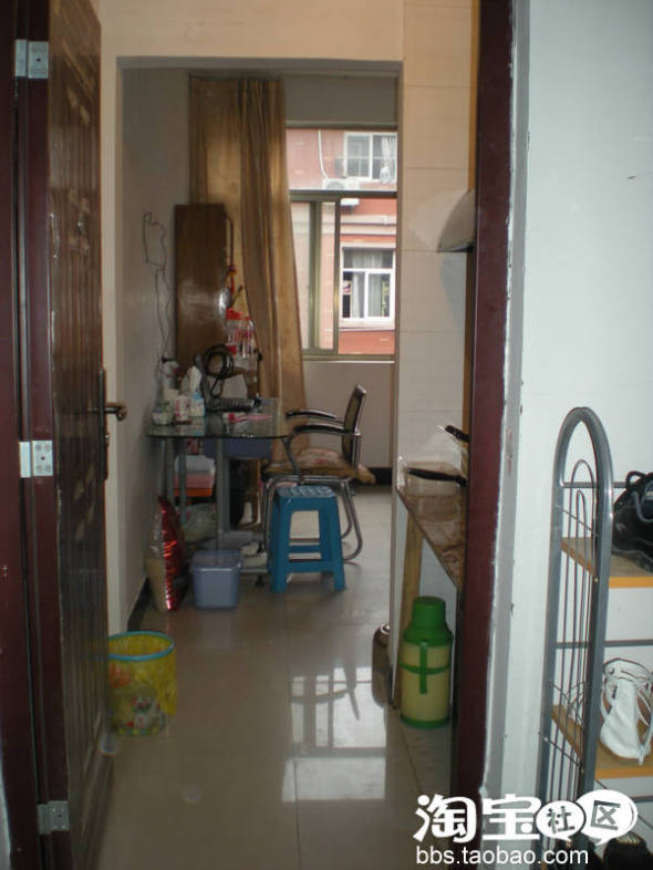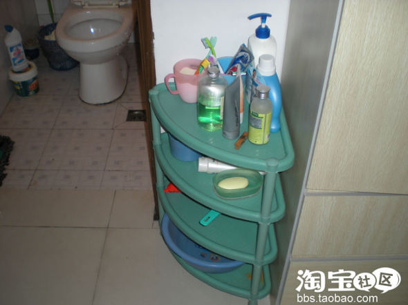 卫生间门口,这个小架子本来是放在卫生间的,但是每次洗澡水都淋在上面,无奈卫生间太小,干湿也不分的。