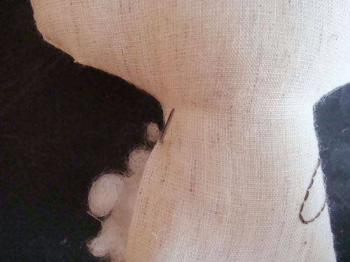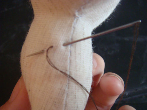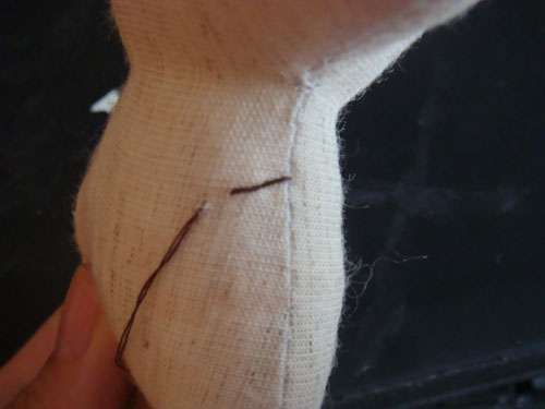 12.然后就是绣另一只胳膊。因为还没有缝合返口,所以绣的时候会比较麻烦一点。
