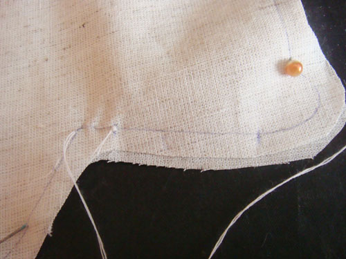 4.要从标记的返口的位置开始缝奥~返口的位置一定要是直线的地方,因为翻过来没法缝弧形奥~是用最最最普通的平针缝就好了~