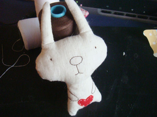 7.塞好棉花。注意一定要塞的饱满哦`~不然没有型凹~