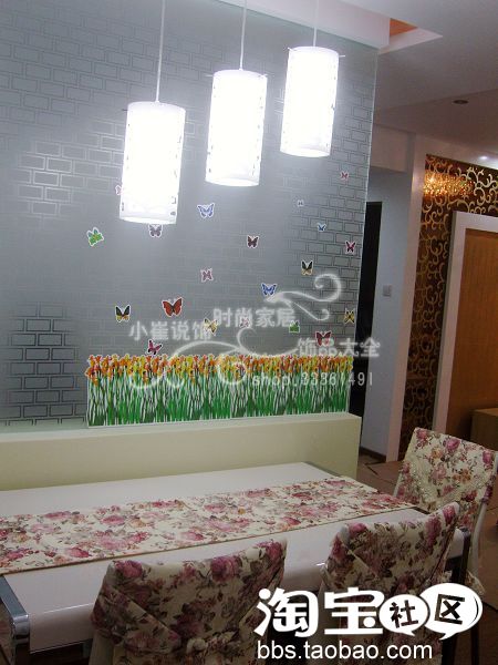 刚刚布置好的椅子套件和墙贴,还没有完工,墙贴弄一半太累了,明天继续