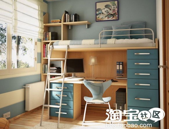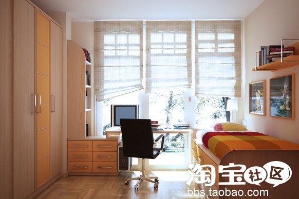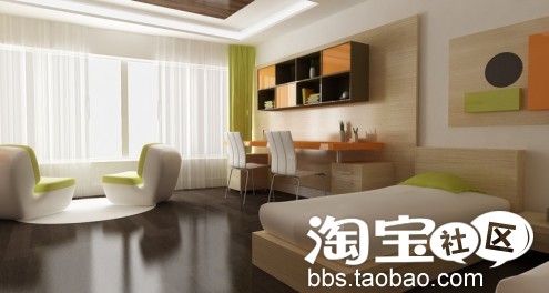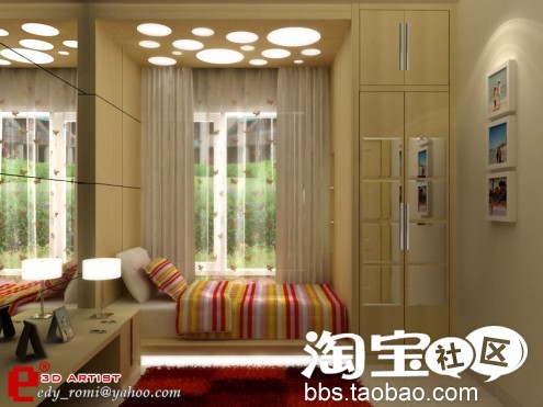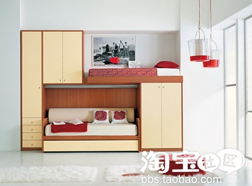 呵呵,主要是床与家具的搭配比较别致,估计得订做了