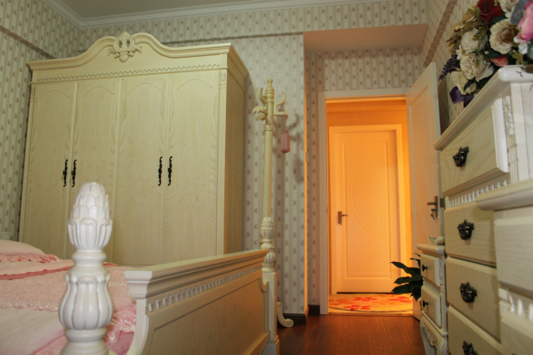 客厅与主卧都是贴的英国进口的布鲁斯特墙纸,儿童房暂时没贴,因为不知道将来的宝宝性别,所以暂时闲置。