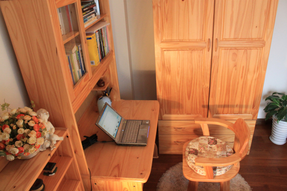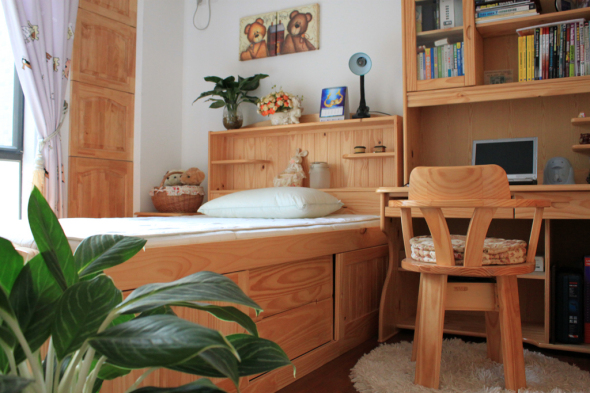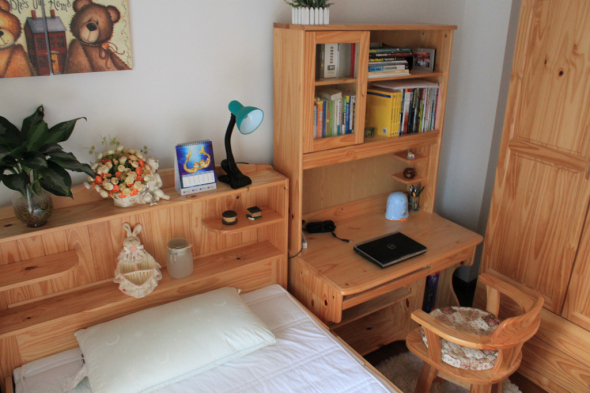 衣橱、书桌、床、床头柜,刚好呈阶梯状摆设,感觉还挺好