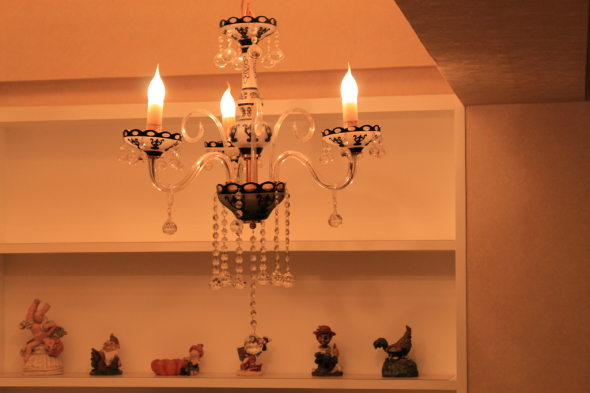 这款蜡烛灯原本配的是巴洛克的吊坠,我要求换成水晶球的,反光面更多,透明度更好