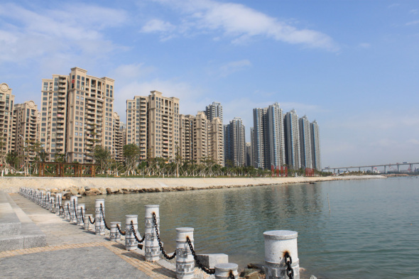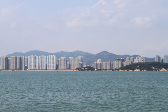 我们的小区临海,不过我们这栋不是第一排,仅仅能看到一小片海,但风景好的没话说,有图为证......