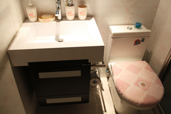 卫生间太小了,没多少施展的空间,浴柜也没办法随心所欲的买,只能量好尺寸对号入座;想要的木桶也无处可放,这样不免留有遗憾。算了,就像老公说的,功能齐全就行了。