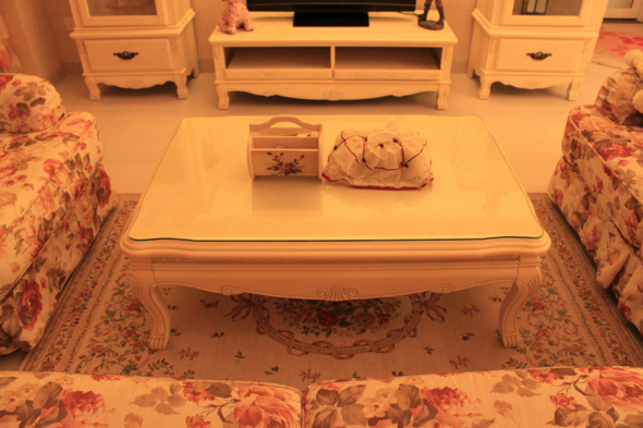 沙发角几。桌面玻璃可是家具厂家量体裁衣的哦,不然哪有这般合适哦