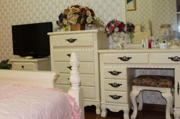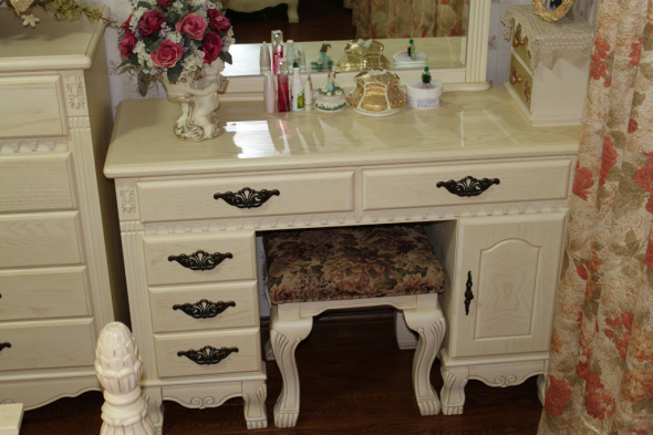 因为不能正对床,所以将梳妆台移到了角落,委屈它了
