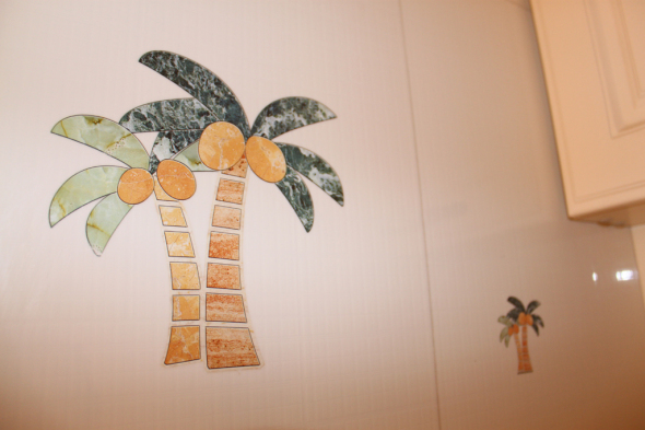 墙砖上的水印画就是后来印上去的,找了好久才买到这种仿古效果的,贴上去聊胜于无吧