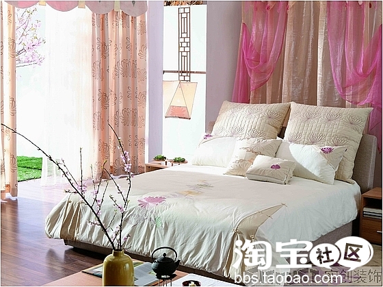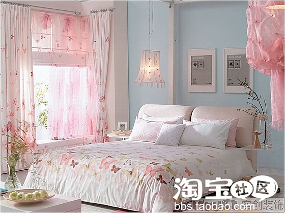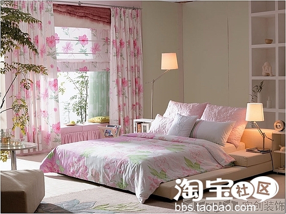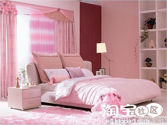 满室的粉嫩更倾向于新娘,却是新郎为爱的体贴,彰显了爱的奇妙;纱缦,如一张神秘的面纱,亦如新娘美丽的婚纱充满柔情,呵护爱的树苗茁壮成长。