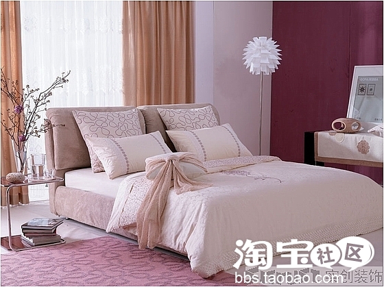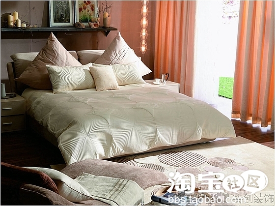 协调的美,不在搭配,而在运用。圆满,体现在床品与地毯,它们给予新人无声的祝福;别致的灯饰,增添几许浪漫情怀,脉脉温情。