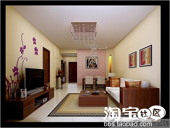 典雅、端庄,动如脱兔,静如处子!沉稳的木制家具,中国元素的丝缎靠枕,显露着新人沉静的爱情,默默发酵,电视背景墙上的花卉悄然绽放,于室留香!