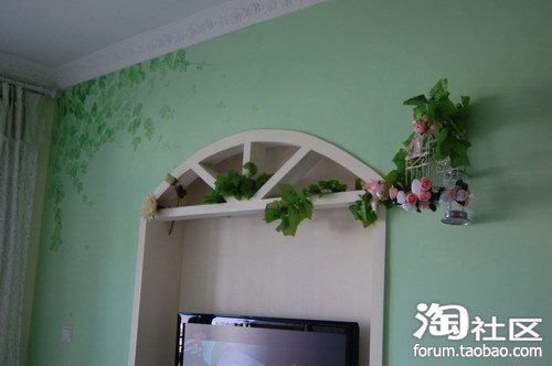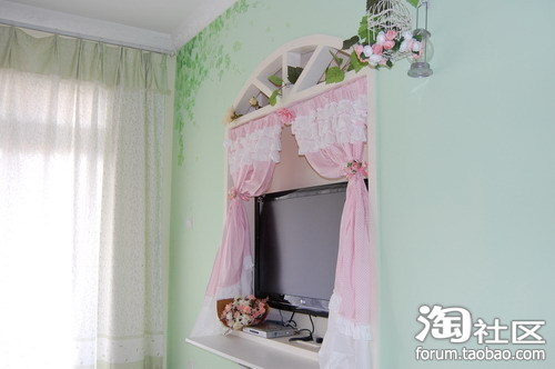 电视背景我做个一个假窗,很漂亮。那个窗帘是在一个大长今的粉丝店里面的定做的!