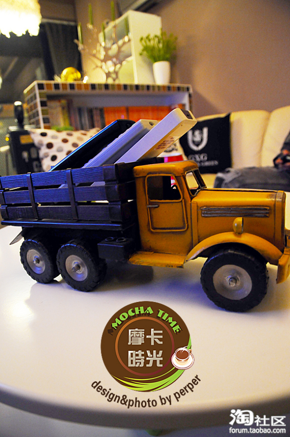 【一起去荷花池淘来的铁皮小车,朋友用来装遥控器,效果不错!茶几来自宜家】[最后更新时间为 2010-03-17 17:31]