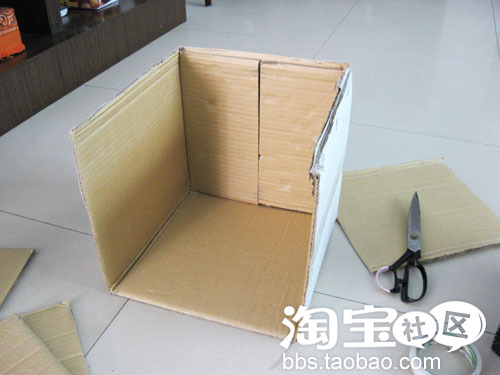 第二步,把箱子的内层如下图贴上双面胶。然后在箱子内部粘上白纸。