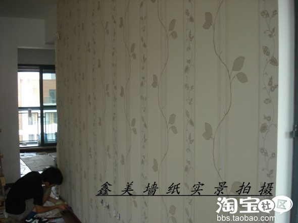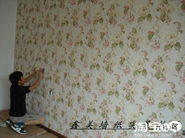 发一些墙纸实物效果图大家评论好不好看?师傅在修理接口