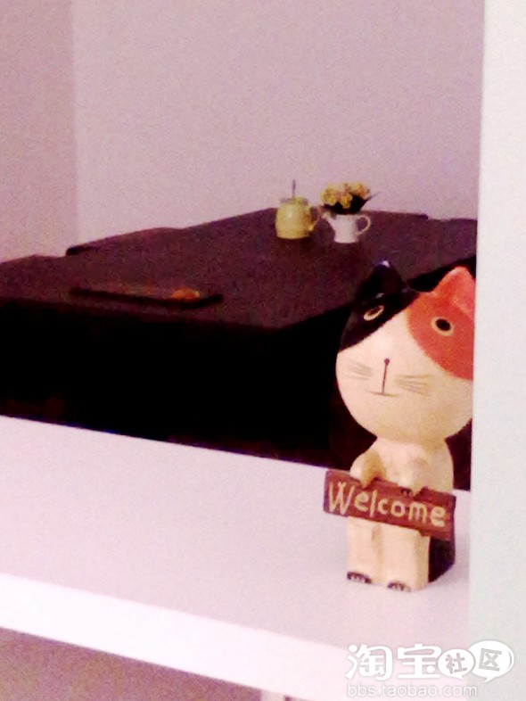 餐客交界处,做了一个小吧台,网购的欢迎猫,先放在这里,酒架还没买好哩嘿嘿