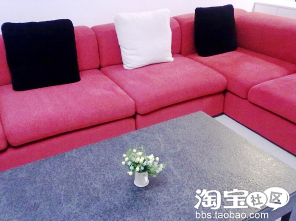 炭烧石茶几,和沙发很搭,餐厅饭桌也是同系列的炭烧石。茶几上是我们俩DIY的小花瓶,很田园吧?嘿嘿~