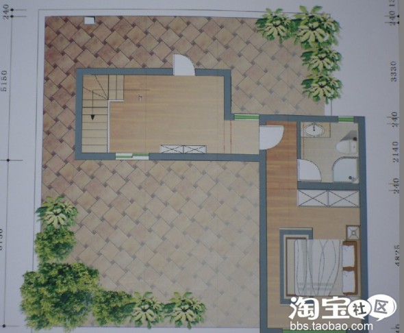 楼下还有一个次卧,打算给小孩住,自己觉得小孩应该好好学习天天向上,反正咱们小时候都这么被别人教育的,终于轮到自己可教育别人了,当然是不能看电视不能上网,如果有这些活动要在大人监督下完成嘞。另外,偶结婚后想生个mm,个人觉得少接受辐射皮肤会很好,所以这个房间就没有改动的必要啦