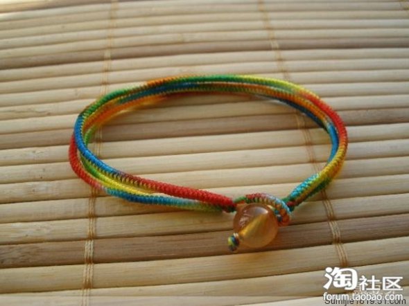看着大家做的各种饰品都很漂亮,我也忍不住上来秀下我的新作.三层彩虹金刚结手链.先上一张图片,呵呵