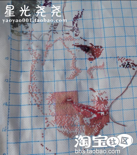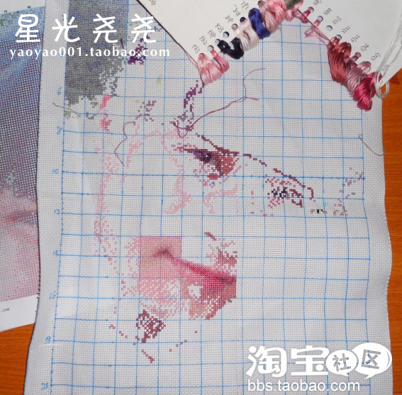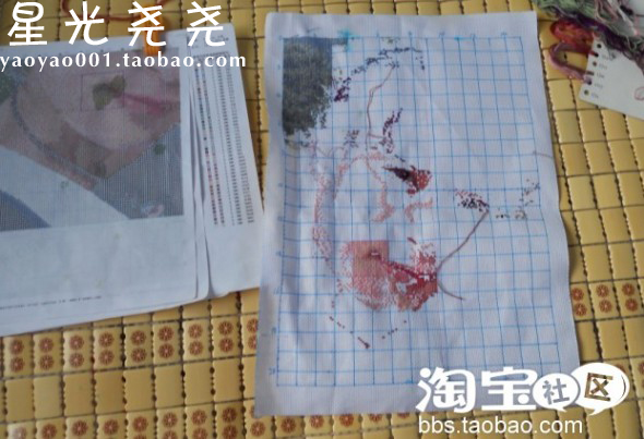 上第三天的效果,也就是今天的的成果啦!我是绣得比较慢的,而且今天一早起床就是为昨天定的货配线/配布,所以没有时间绣,可能在进程上让大家有点失望啊