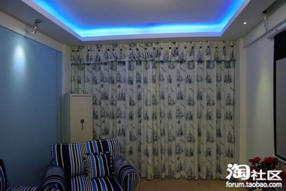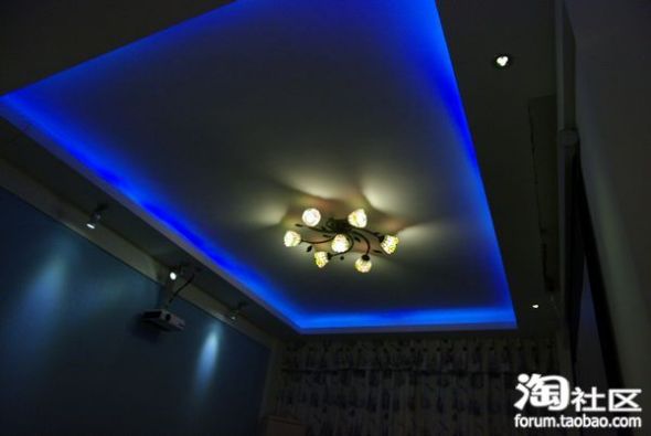 吊顶四周内用的是蓝色的LED灯,很省电,强烈推荐!效果也是非常的不错哦!