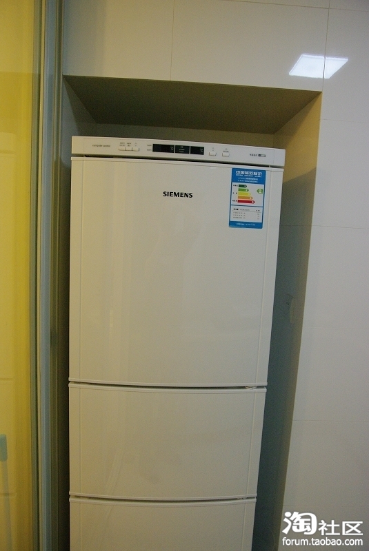 西门子冰箱嵌入式摆法,这样省去了很多空间,很适合小厨房!