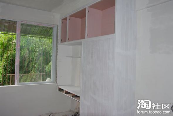 这个是次卧,在旁边的墙做了书柜和电脑桌类的!下面会有完成图哦!