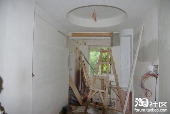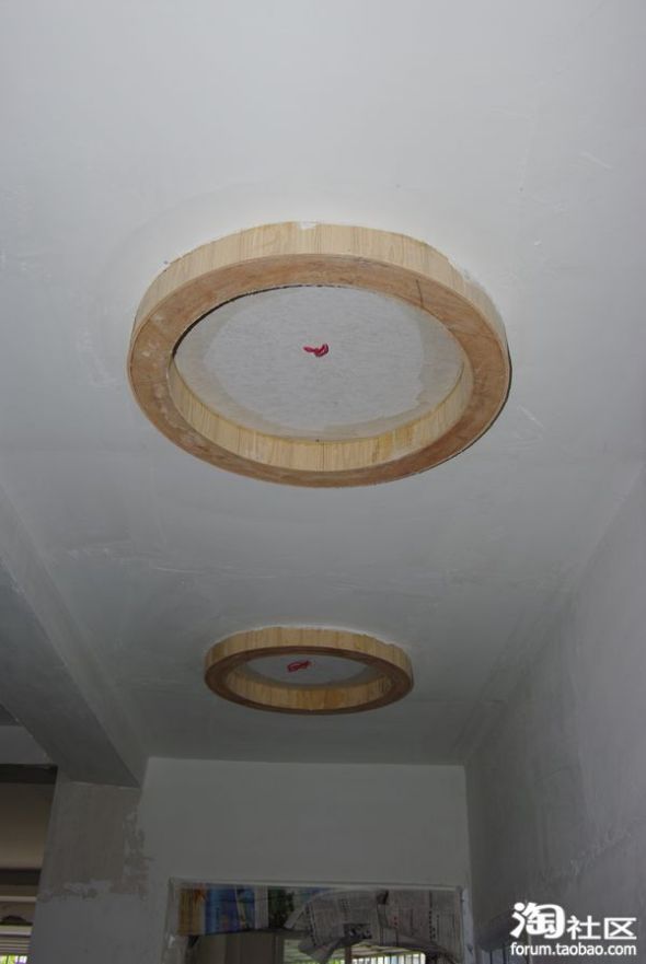近图看看厨房,厨房又分为做饭的地方和吃饭的地方,现在还看不太出来,吊顶做了圆形的造型,做什么用的,大家猜猜吧,哈哈,后面揭晓哦!