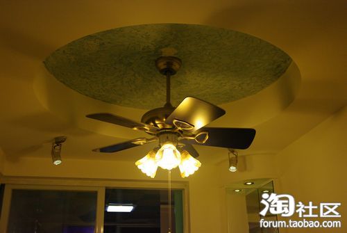 这个是馒头非常喜欢的又地中海又老上海的风扇哦,扇叶是深蓝色的哦!转起来一点声音都没有哦!上面的灯也很漂亮哦!购于淘宝,大概是400到500之间吧!