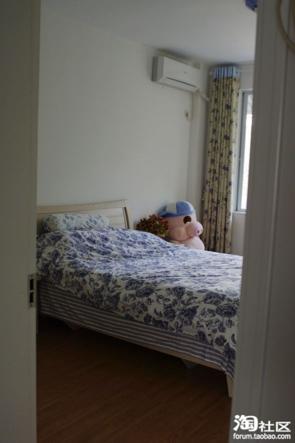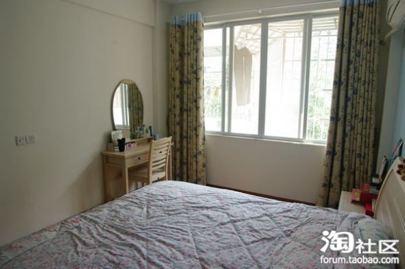 次卧,蓝色玫瑰富安娜床品,加上蓝色玫瑰窗帘,有种小公主的日子。。。