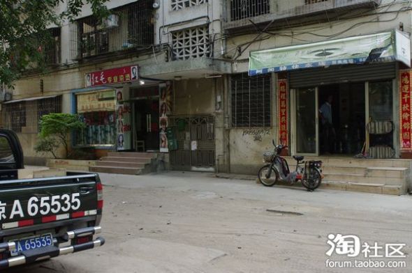 中间的小铁门就是通往我们家的地方咯,这么看真的是有够破的哦!左边是理发店,右边是矿泉水店!