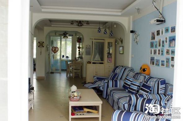 这个是饼干和馒头入住以后的完整的地中海哦!站在阳台角度拍的,实木家具都是淘宝的哦,沙发也是嘻嘻,沙发重重的体现了地中海的浓度!