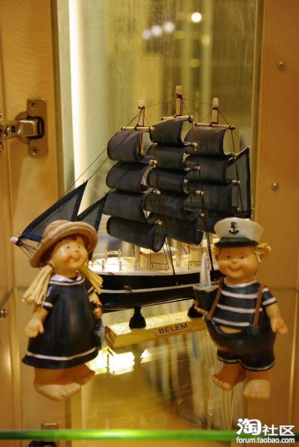 玄关玻璃柜里的海军饼干GG和海军馒头MM准备上船啦,度蜜月去!都是淘宝的哦