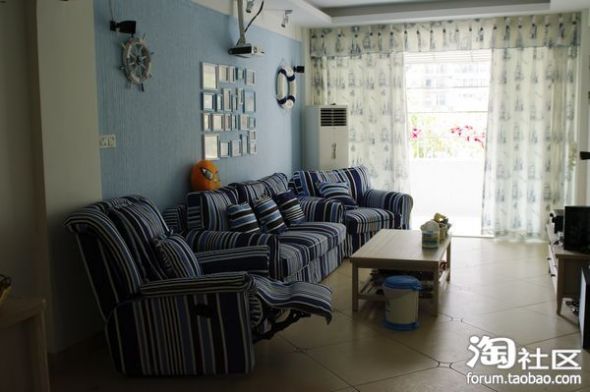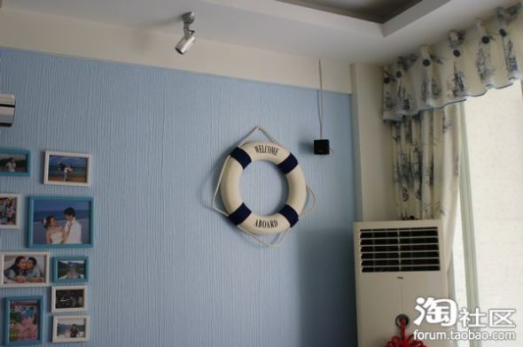 顶过楼主的婚礼篇,再接着顶楼主的小窝篇,幸福恩爱洋溢哦。喜欢那个电风扇,喜欢那个救生圈(貌似是的?),喜欢那个蓝色的墙……………………恩~,简约型,比较干净。