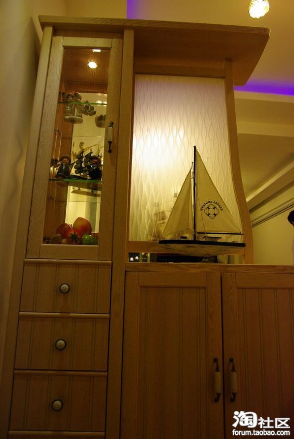看看玄关上小玩意,可爱帆船!玄关玻璃做了磨砂处理,这样就看不到客厅里面了哦!