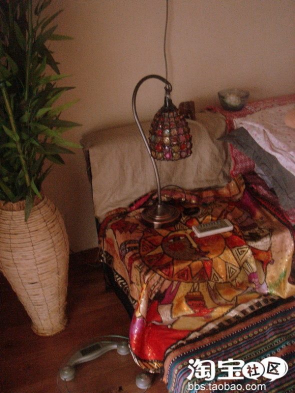 下面是在新疆买的什么丝的方巾,被我拿来铺这里了。很异域风格吧。哈
