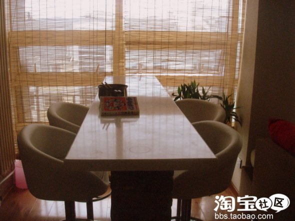 接下来是饭厅……哈哈,其实不能算饭厅,只能算饭桌而已。当时在网上找了很多图片,因为我一直想要个吧台当饭桌。因为家里地方也不大,吧台占地又小。让装修师傅在地上用红砖垒了两个台柱,再买块大理石桌面就OK了。由于台柱不要钱,桌面只要300快钱。所以说这个吧台只要300块就搞定了哦!哈哈,商场里卖现成的吧台都要至少1000多呢,而且我的这个还别具特色。吧椅是淘宝上买的,一个只要120,商场里要500多。一摸一样的哦。