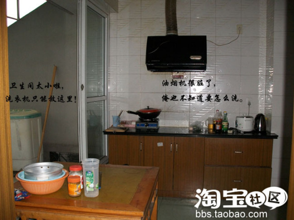 卫生间也是超小啊,所以洗衣机只能放阳台了。风吹雨打的,残了不少。
