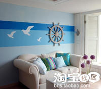 墙上画蓝色墙绘, 或者买蓝色贴纸,