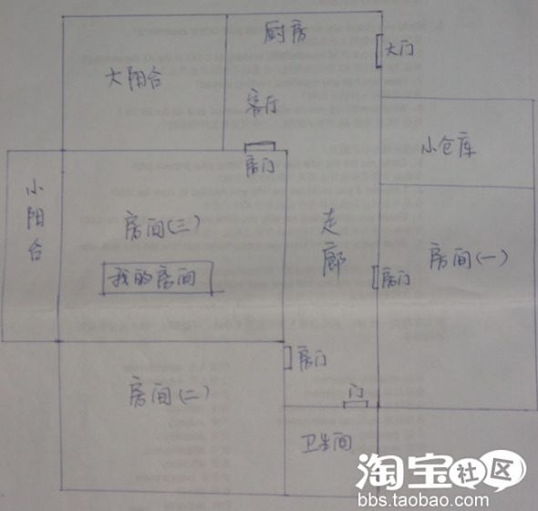 一共3个房间,大家合租的,“房间3“就是我和姐姐的房间了。