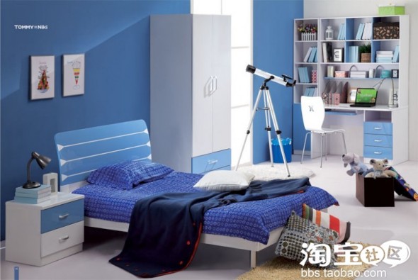 需购置床套,蓝色被套,床头柜,衣橱,电脑桌,背景墙,天窗窗帘。