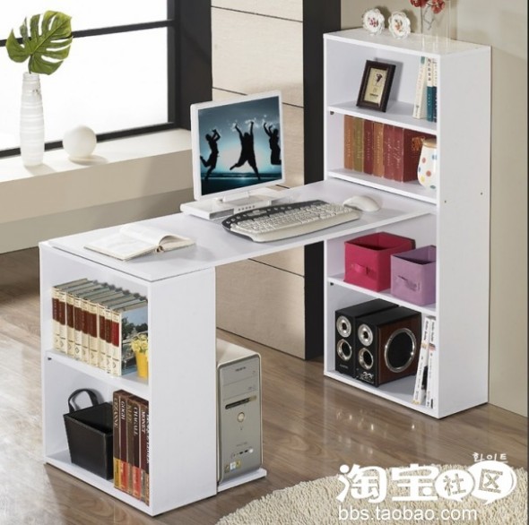 长方形带置物空间的桌子,放我和姐姐两个人的电脑,还有书和化妆品。
