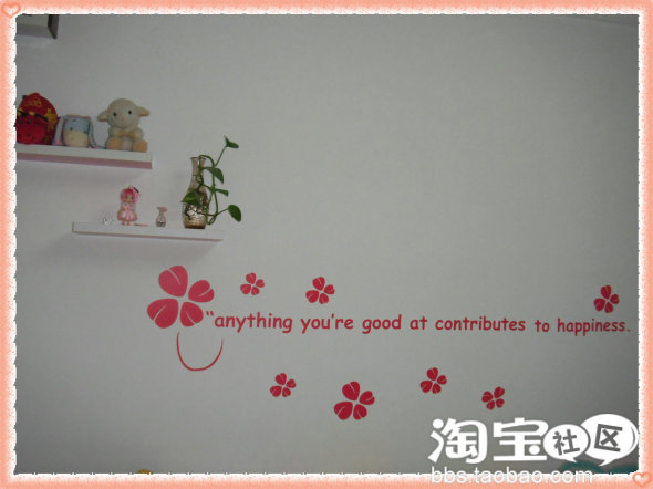 浪漫满屋墙贴相信大家都认识100张9.9元钱,台灯从哈尔滨买回来的,本地买的红脸蛋淑女兔,淑女狗.组成了快乐家族.