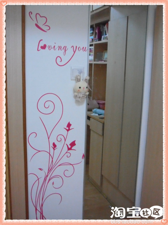 陶宝网购的墙贴,旁边是穿衣镜