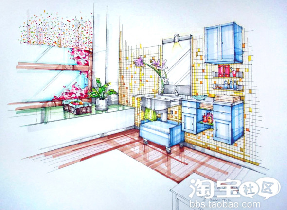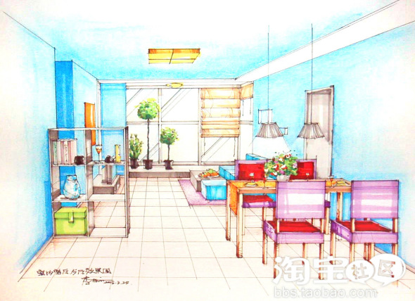虽是设计师,却是以手绘见长,许是因为上学那会儿,学校太穷,还没啥电脑呢,俺就没学得软件,虽有点美术的底子,也有比其他设计师多点动手的地方,好在,俺的效果图可以很快有效直观的表达出来,同时和电脑学校培训出来的绘图员还是有本质区别的。软件学会了,不是设计师也能出3D效果图,可不是学点美术的,是画不出手绘效果图的。
