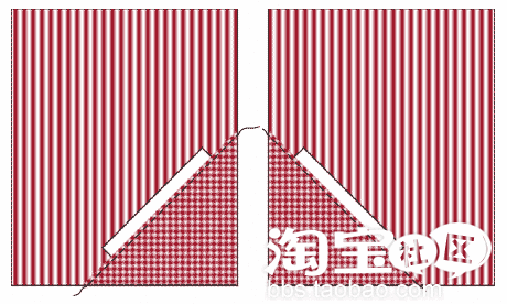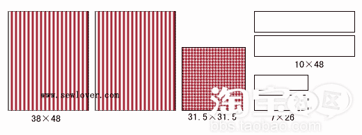 如下图所示(已包括缝位)裁剪2块条纹布、1块格子布、4条白布(长的两条是包带):