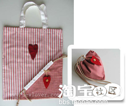 接下去就是将包身缝合,装上包带,在这里不在赘述。包包制作好之后在前后两块斜布条当中穿一根绳子就制作完成了。
