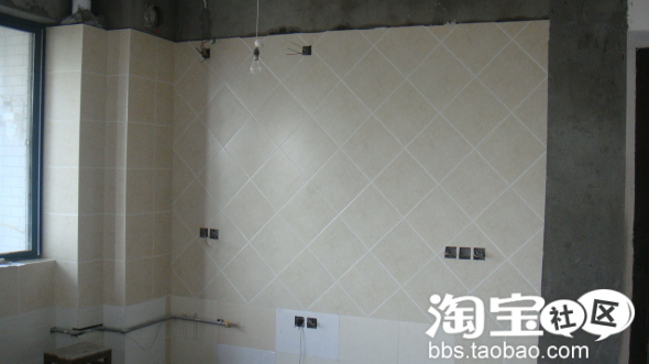 厨房的砖贴了三分之二 用的是30*30的大砖斜贴 中间白白的缝就砖体本身带的效果 鄙视我自己的拍照技术 实物的颜色和光泽度都好很多